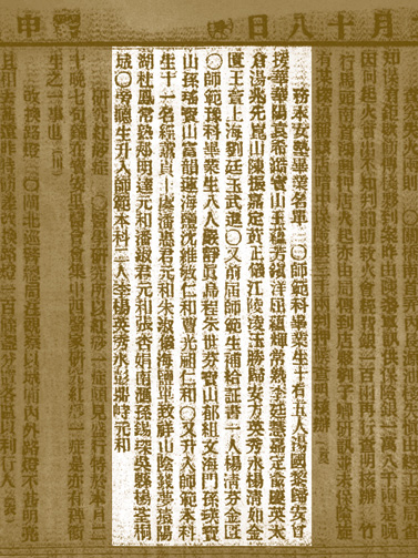 师范科毕业生十有五人:汤国黎归安、曾援华华阳、袁希澔宝山、王藴芳镇洋、屈蕴辉常熟、李廷慧嘉定、俞庆英太仓、汤兆先昆山、陈振嘉定、黄正仪江陵、凌玉胜归安、方英秀水、杨清如金匮、王萱上海、刘廷玉武进