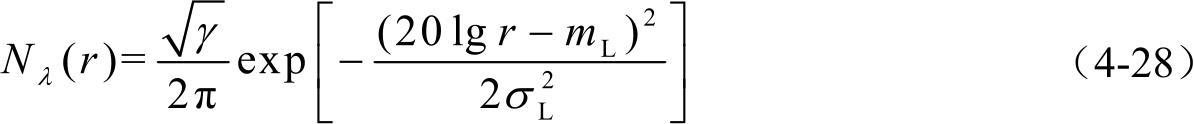 式中, σ 0 = σ (ln10)/20。式(4-16)描述了距离的变化对阴影衰落的影响。