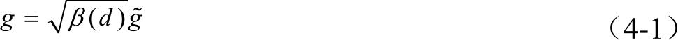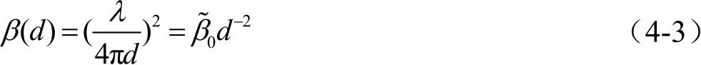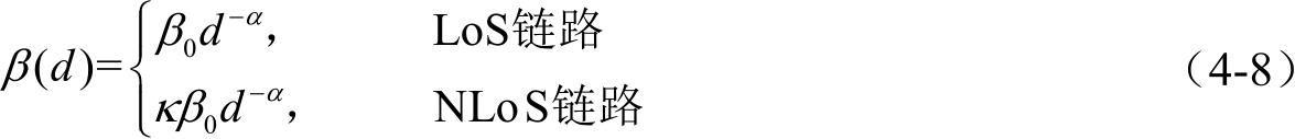基于角度参数的概率LoS信道模型将式(4-1)中的大尺度衰落 β ( d )建模为: