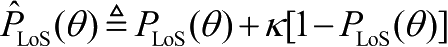 式中, β 0 是在LoS链路下距离为1m时的路径损耗; κ <1,表示由NLoS链路带来的附加衰减系数。概率LoS信道模型可使用仰角 θ 的函数来表示,即: