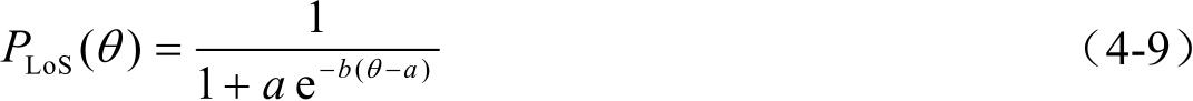 式中, a 和 b 是模型参数。式(4-9)表明LoS链路的概率随着仰角的增大而增大,最终趋近于1。
