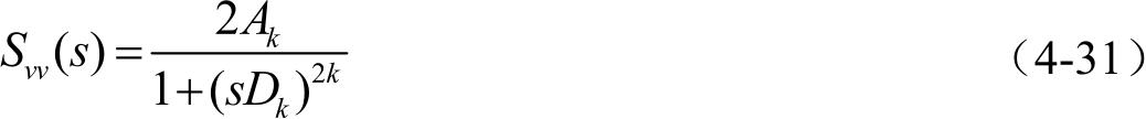 巴特沃斯模型用含有 k 阶巴特沃斯滤波器的函数表示高斯过程 v ( x )的功率谱密度,即: