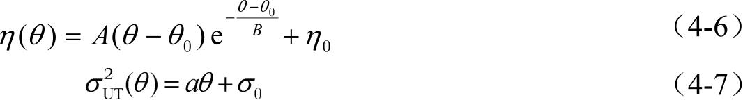 式中, A 、 B 、 θ 0 、 a 、 σ 0 是模型参数,可以基于对测量数据的曲线拟合获得, A <0,因此 η ( θ )随着 θ 的增加先减小后增大。这一方面是因为随着无人机飞行高度的增大,障碍物的阻挡和散射减少了;另一方面是因为链路距离的增加使地面基站天线增益下降了。