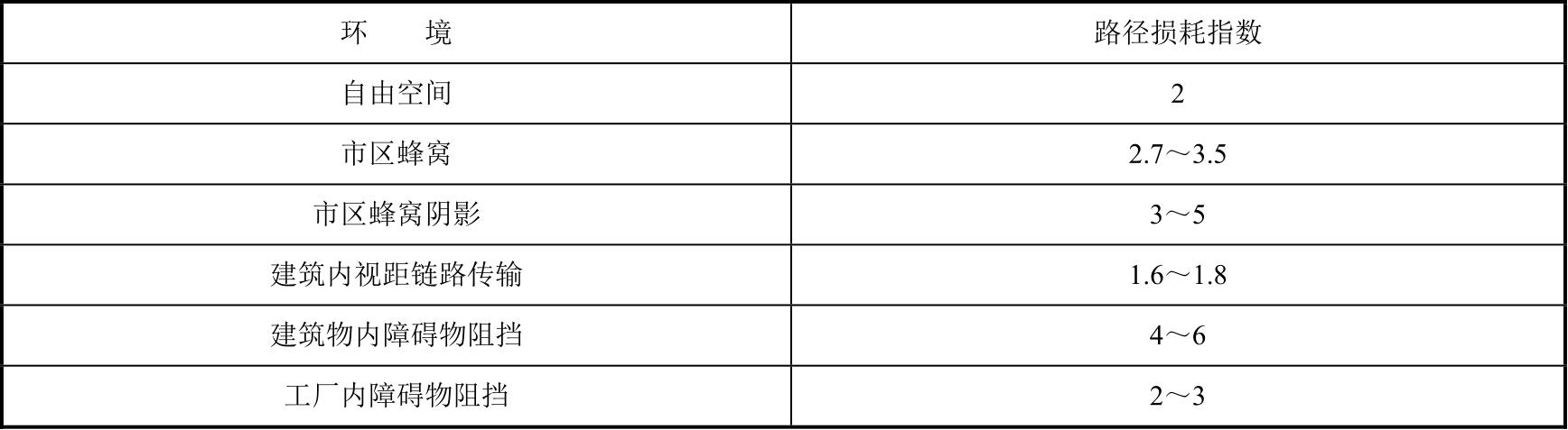 是路径损耗指数,通常取值为2~6之间,由该区域中建筑或植被的密度、种类、高度等因素决定。当