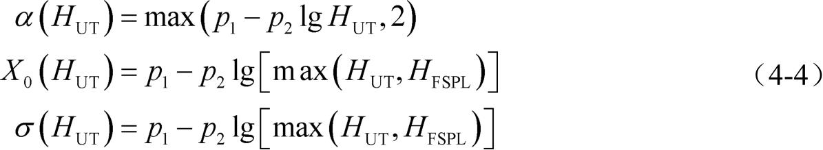 对于GBS-UAV链路,可以将式(4-2)中的各个变量描述为关于无人机飞行高度 H UT 的单调递减函数,即: