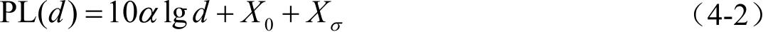 的正态(高斯)随机变量。式(4-2)表明相同位置的接收机受到随机阴影衰落的影响而具有不同的路径损耗。