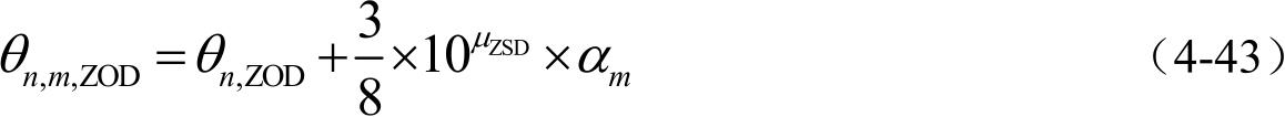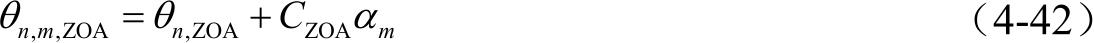 式中, C ZOA 为每条路径内子径偏移的均方根,由实测数据统计得到; α m 为每条子径的偏移量, α m 沿用水平角度的相应定义。