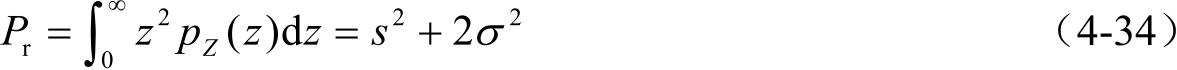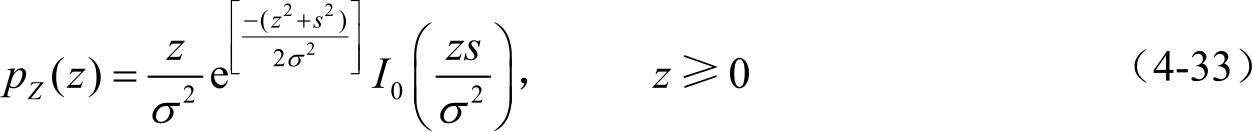 当信号中存在视距传播的成分时,接收信号的均值是非零的,是直射成分和复高斯信号的叠加。在这种情况下,可用莱斯分布对信号包络建模,即:
