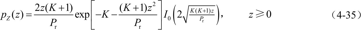 莱斯分布也常用衰落参数 K = s 2 /(2 σ 2 )来表示,此时式(4-33)可写成: