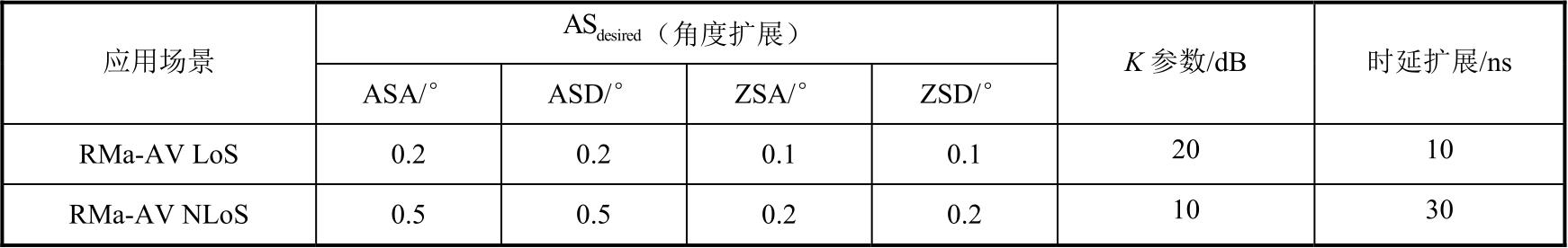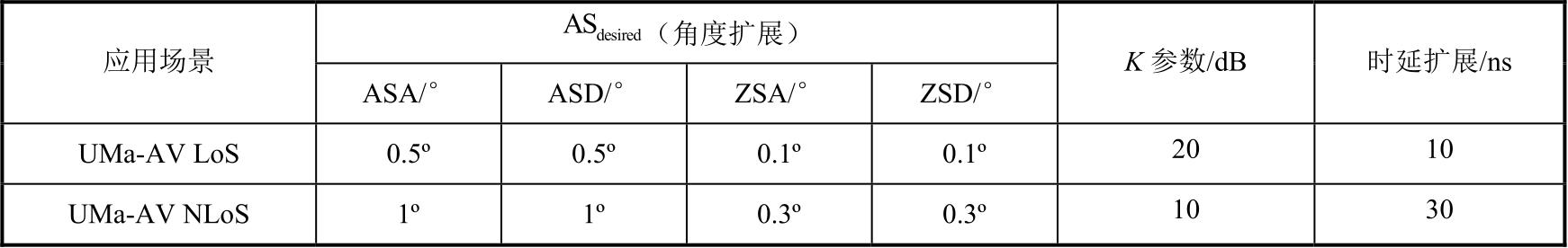 表4-7 UMa-AV场景的所需角度扩展、时延扩展和 K 参数