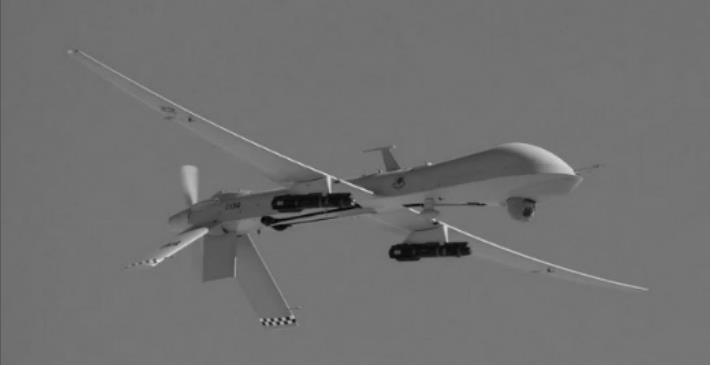 (2)军事打击:无人机可以搭载多种武器,并在陆海空多种场景中进行军事打击。另外,无人机也可以在战场中进行反导弹拦截。作战无人机既可以搭载小型大威力的精确制导武器对敌方通信设备进行打击,也可以搭载导弹对区域进行空袭。战术无人机可以完成自杀性袭击的任务,对敌方重要区域进行打击。主战无人机则可以在战场中承担全球打击任务,其可以携带大量武器,在对地攻击、空中作战、导弹拦截等多方面对战场进行支援。同样,作战无人机可以与侦察无人机相结合,实现“察打结合”,在探明敌方目标后立即进行军事打击。