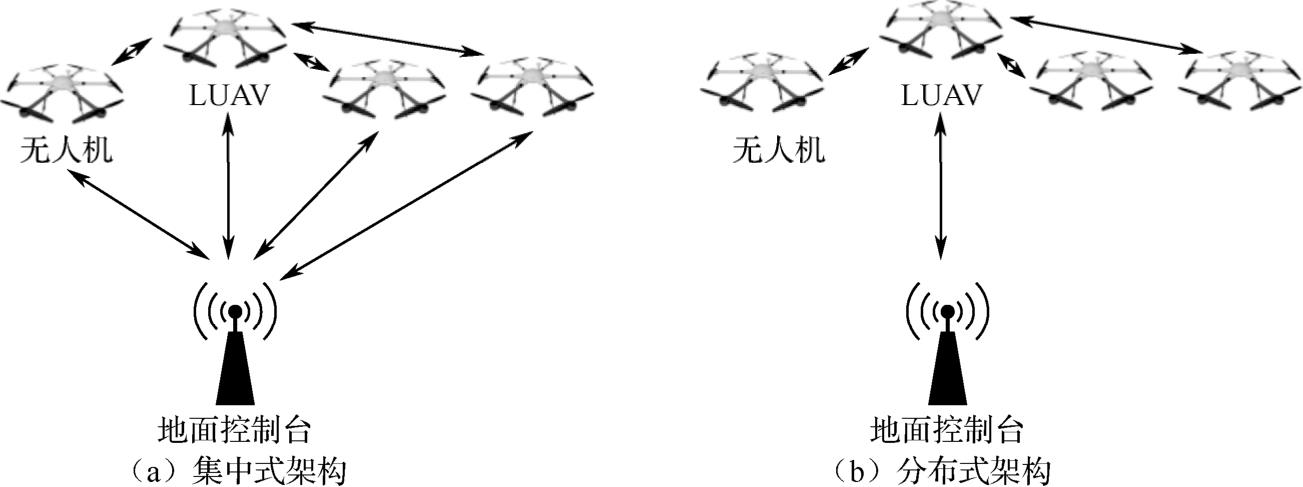 在无人机集群中,控制方法常采用集中式架构和分布式架构,如图1-5所示。