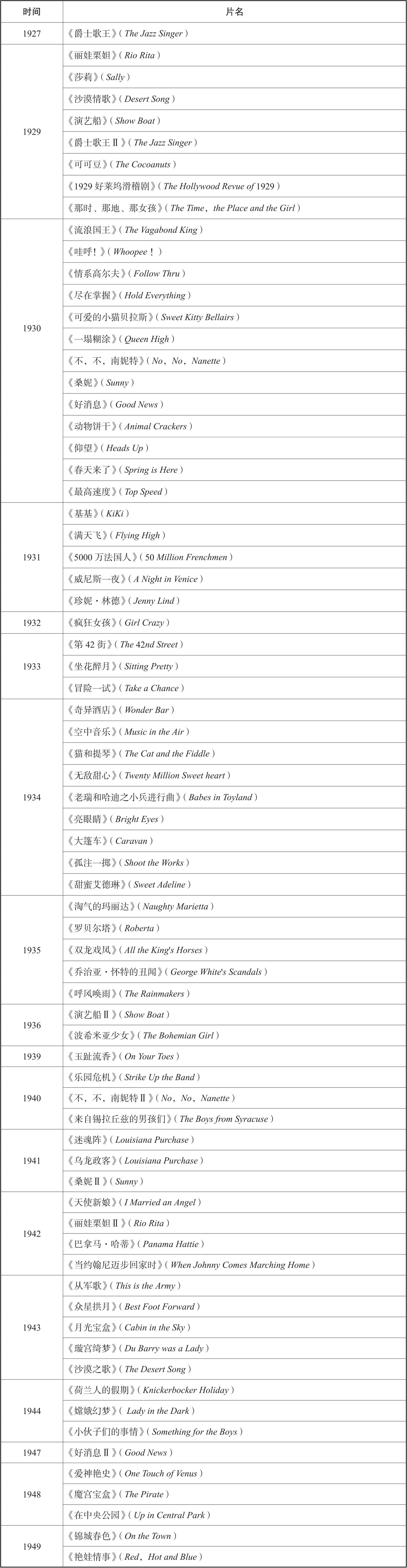 表2-1 1927—1949年改编自音乐剧的好莱坞歌舞片片目对照表