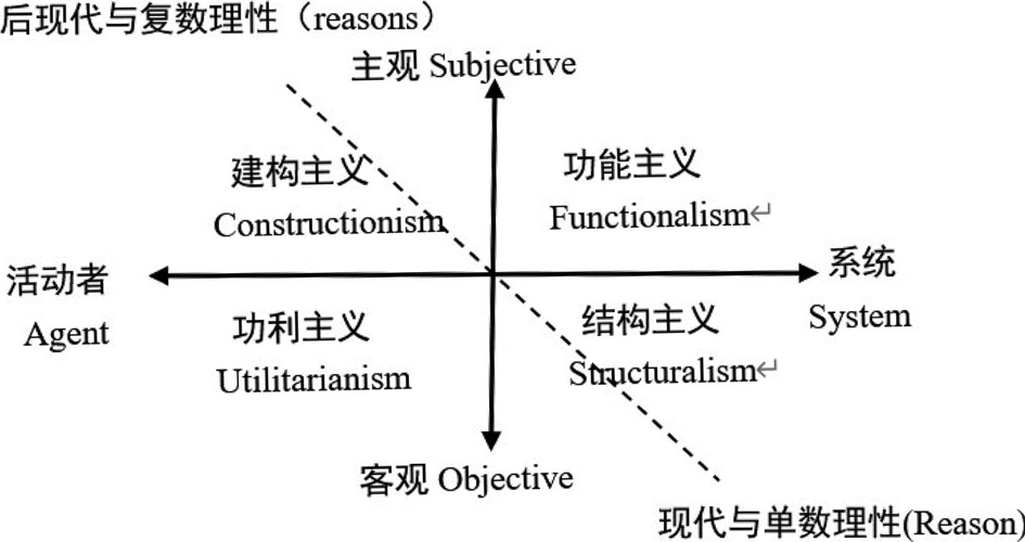 基本上,整个类型的划分就处在活动者与系统、主观与客观、理性与有限理性等的相互组合之中(如图1-1)。