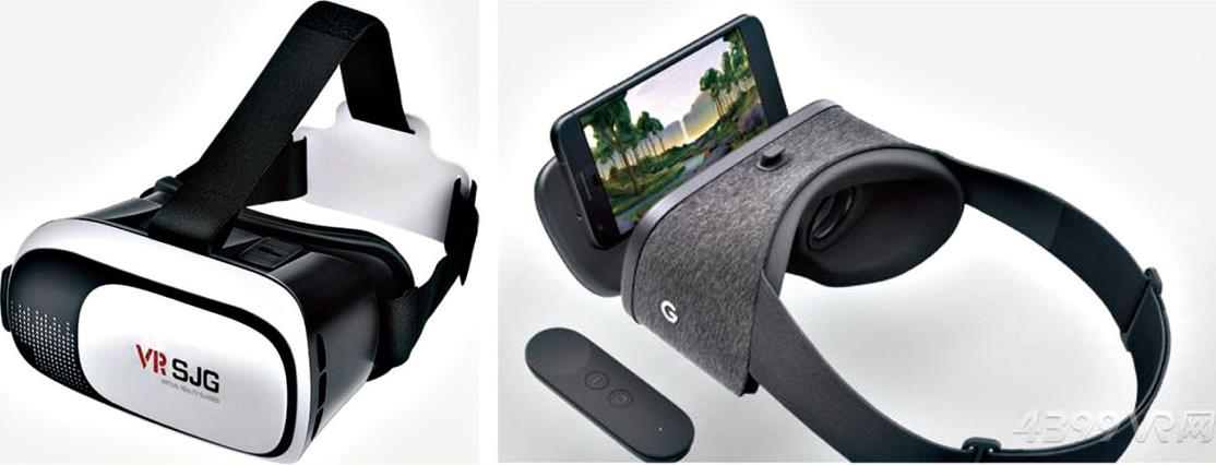 手机盒子头显(如图2-1)主要是由镜片、头带、塑料机身和前置板组成。当使用手机盒子头显查看内容时,需要一部手机配合使用。将手机中的VR内容点击播放后,放置在手机盒子头显内进行观看。手机盒子头显作为初代VR内容承载工具,现已被市场淘汰。