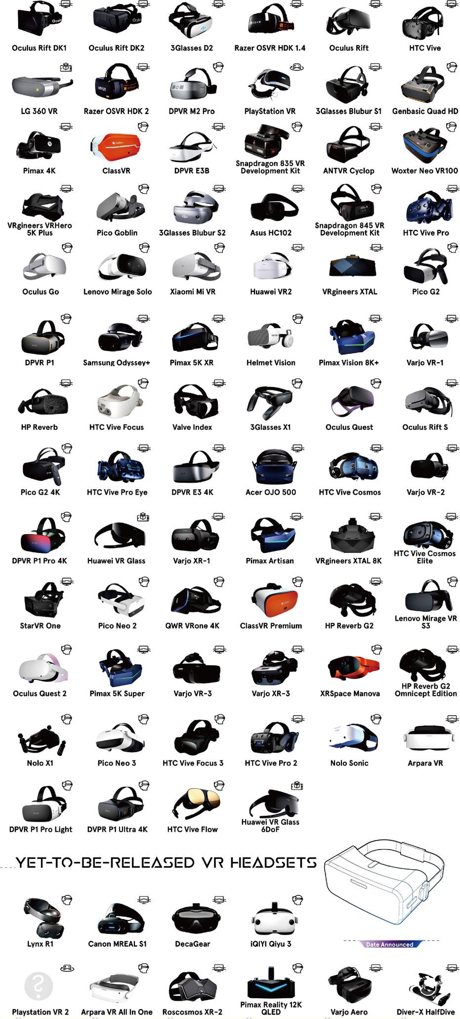 VR头显可分为三类:手机盒子头显、外接式头显、一体式头显。