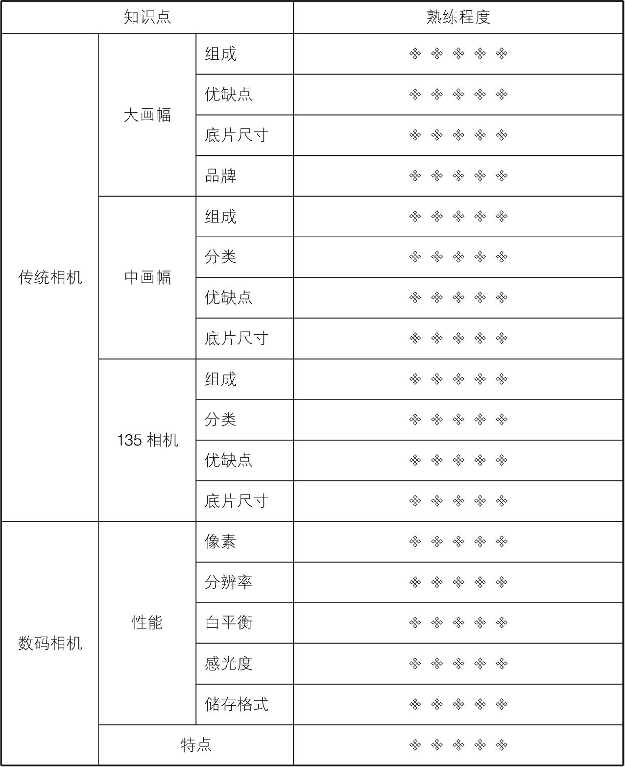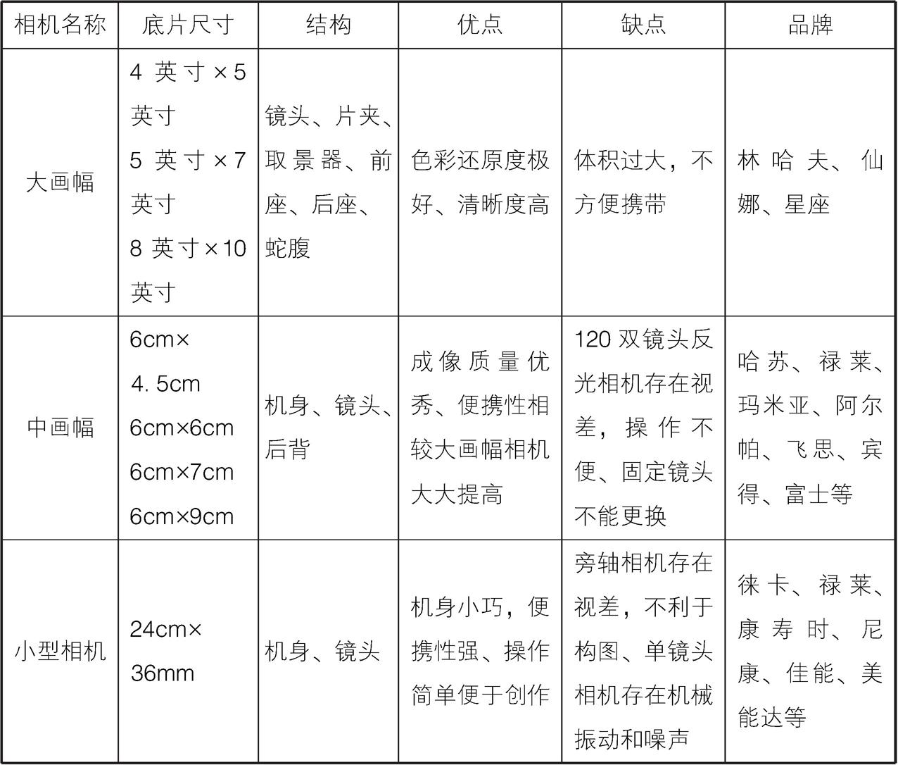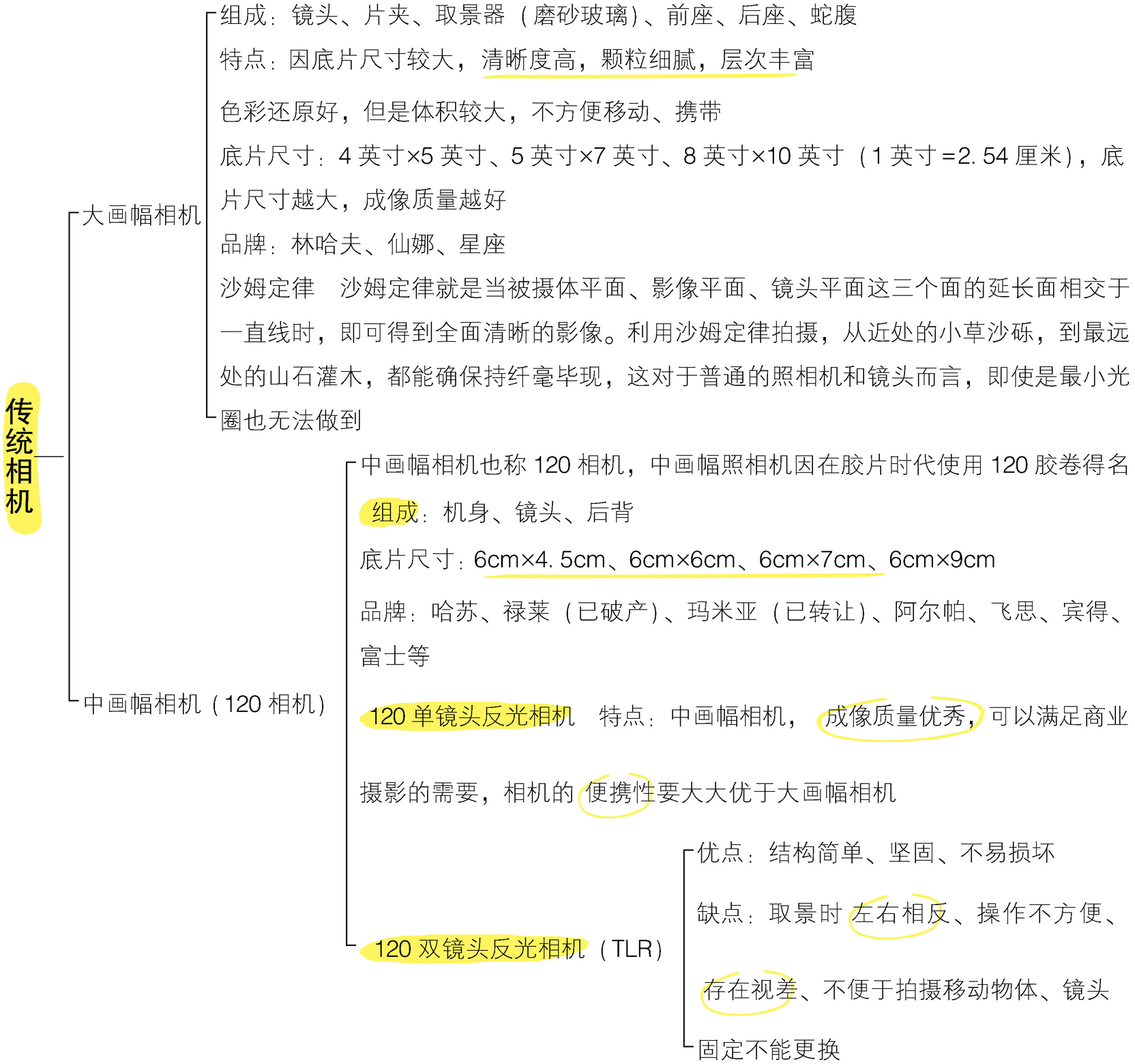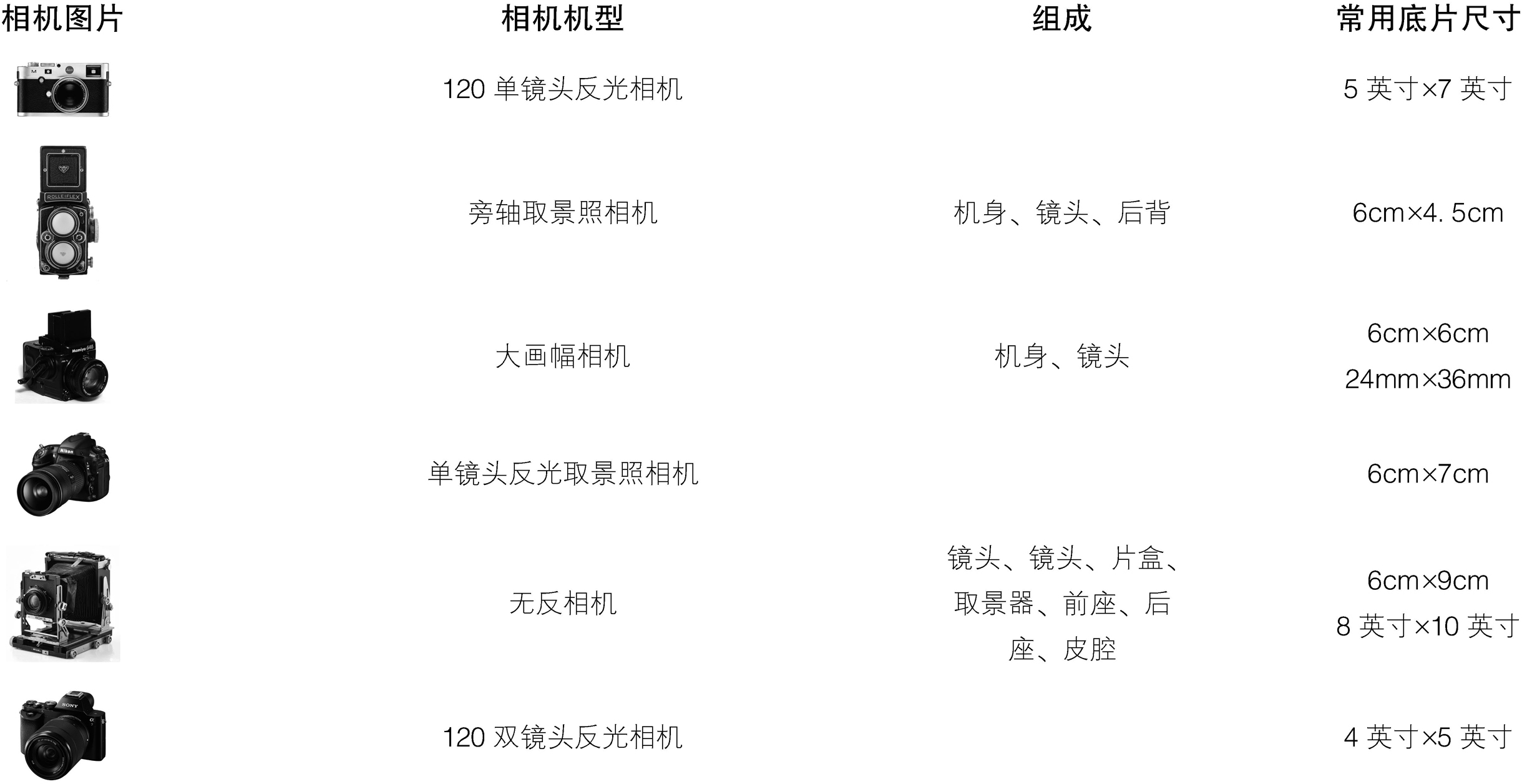 一、连线题:请将下列相机图片对应的相机机型、相机组成、常用底片尺寸、优缺点和常用品牌进行连线。