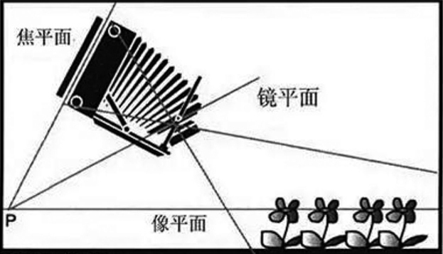 沙姆定律指当被摄体平面、影像平面、镜头平面这三个面的延长面相交于一直线时,即可得到全面清晰的影像。利用沙姆定律拍摄,从近处的小草沙砾,到最远处的山石灌木,都能确保持纤毫毕现,但这种效果对于普通的照相机和镜头而言,即使是最小光圈也无法做到。