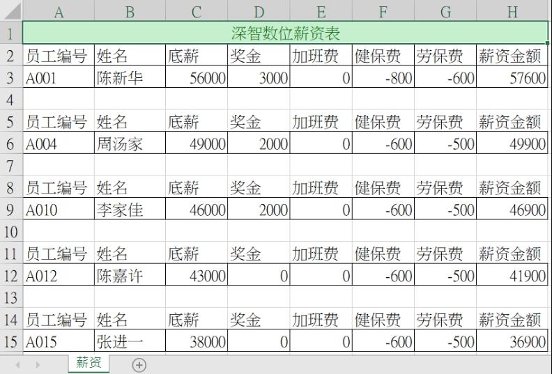 如果每个人的薪资数据上方增加明细,则可以让人一目了然。