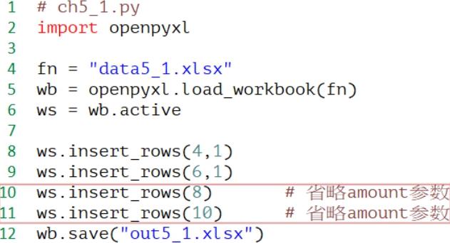 注1 上述第10~11行省略了amount参数,表示只插入1行。