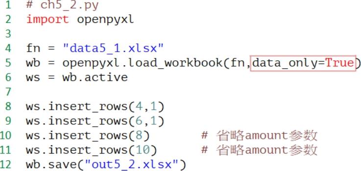注2 从上述的H3:H11,除了H3单元格外,其余单元格的数据是错误的,因为开启文件时没有考虑H3:H7单元格是公式,程序实例ch5_2.py会做改良。