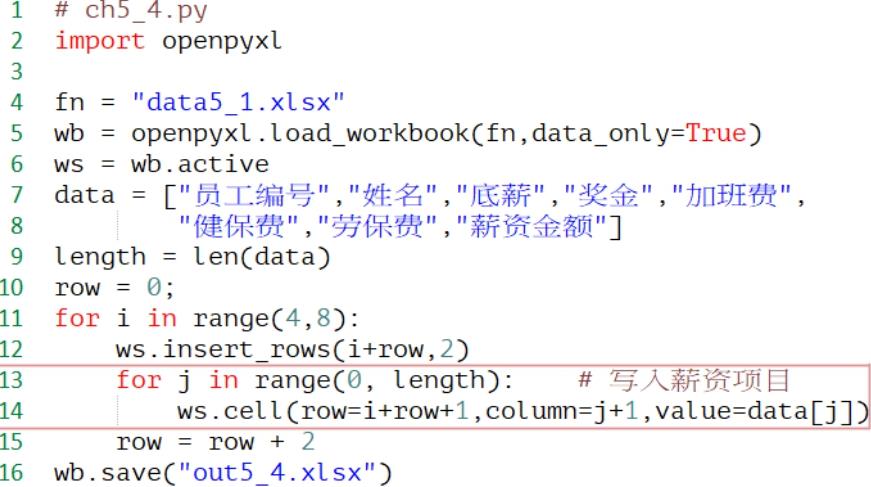 程序实例ch5_4.py: 在薪资条上方加上薪资项目。