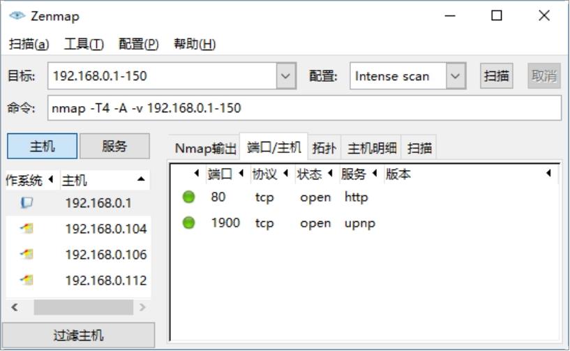 Nmap扫描器是一款针对大型网络的端口扫描工具,包含多种扫描类型。它对网络中被检测到的主机按照选择的扫描选项和显示节点进行探查。用户可以建立一个需要扫描的范围,这样就不需要再输入大量的IP地址和主机名了。