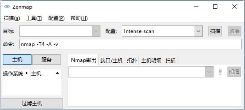Step 01 在桌面上双击Nmap程序图标,打开Nmap操作界面,如图2-13所示。