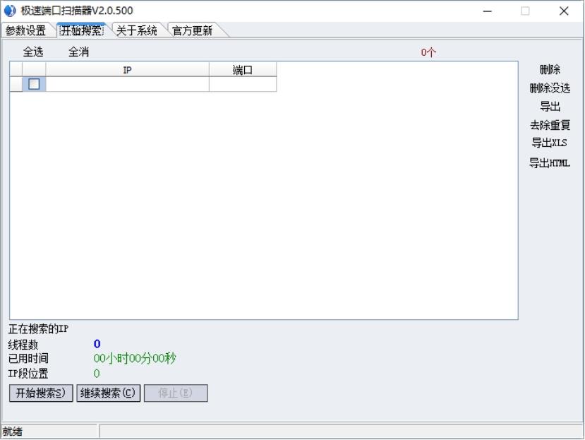 Step 01 下载并运行“极速端口扫描器V2.0.500”,打开“极速端口扫描器”主窗口,如图2-5所示。