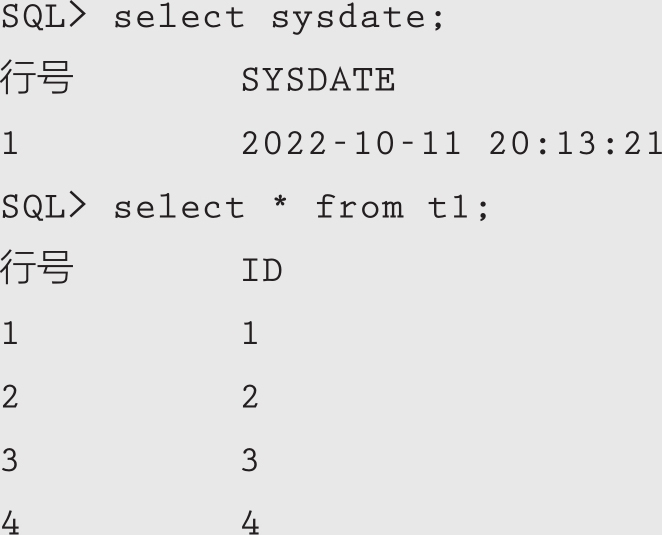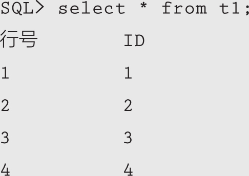 SQL> select * from t1; 行号 ID 1 1 2 2 3 3