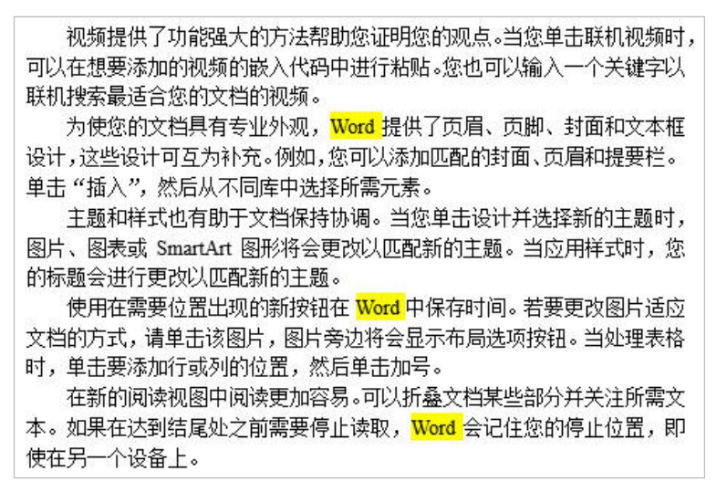 如图2-9所示,文档中共有5个段落,其中3个段落中都包含“Word”单词,现在想要使用“替换”功能一次性删除这3个段落。