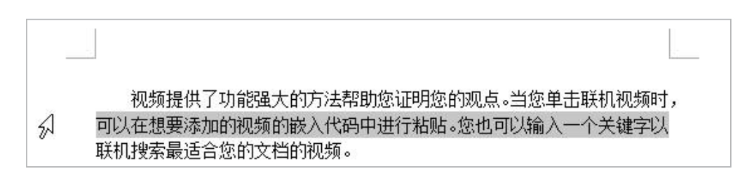 ● 选择一段:将插入点定位到要选择的段落的左侧且位于页面的左边距范围内,当鼠标指针变为