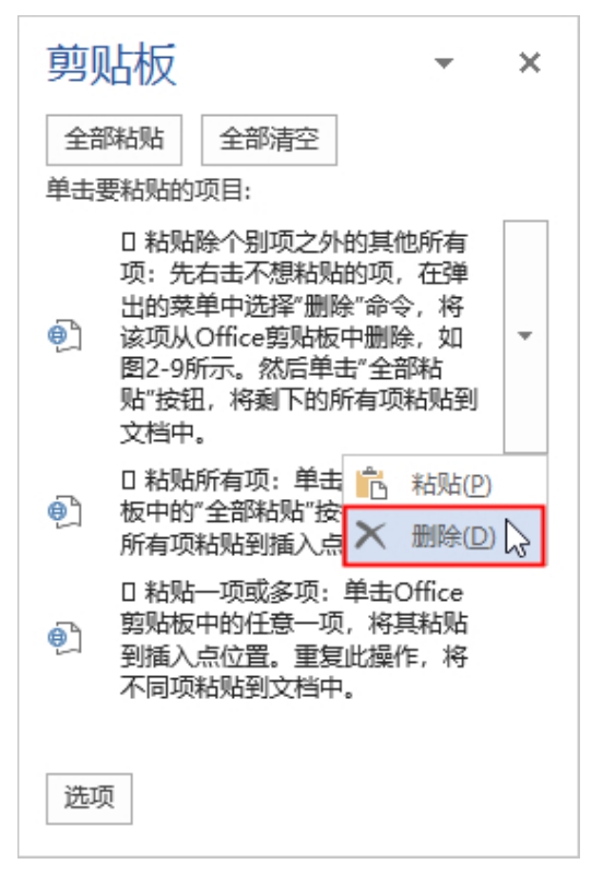 图2-11 从Office剪贴板中删除不需要的项