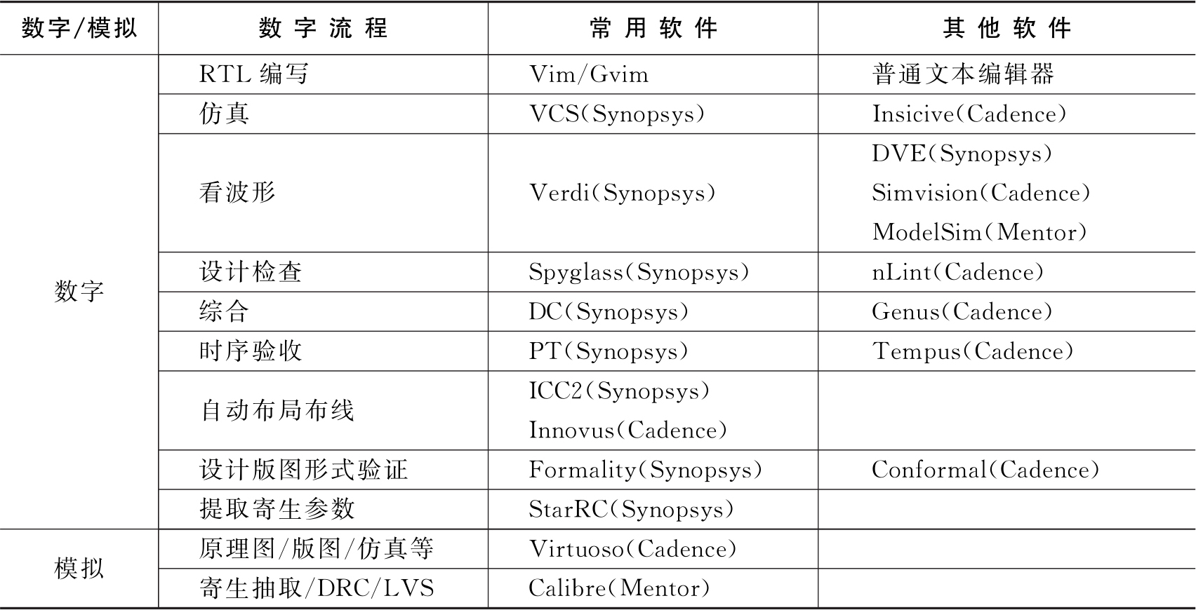 IC设计中常用的EDA软件见表1—1,括号中为公司名。