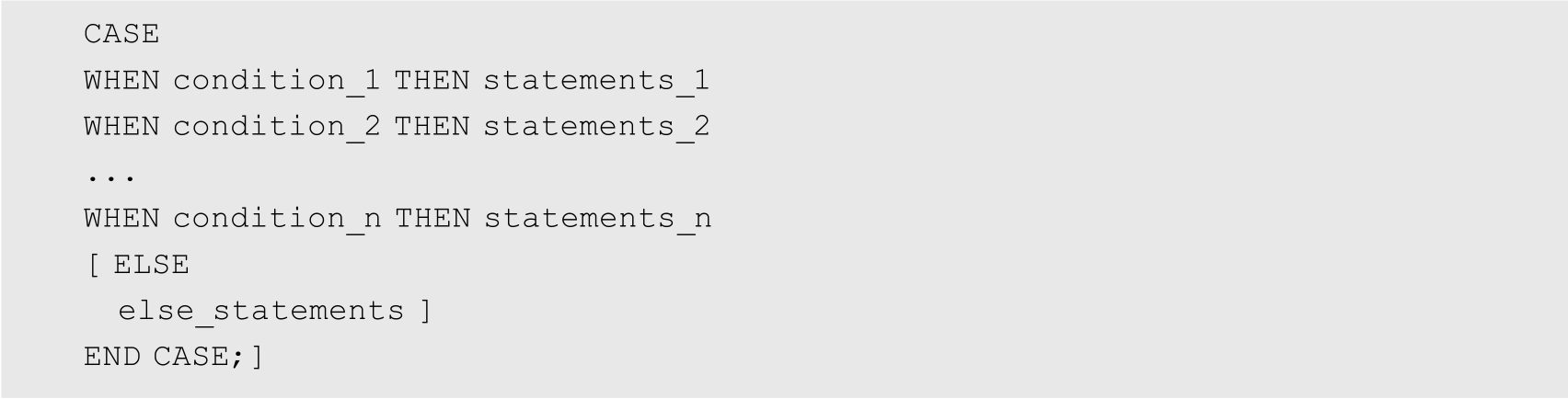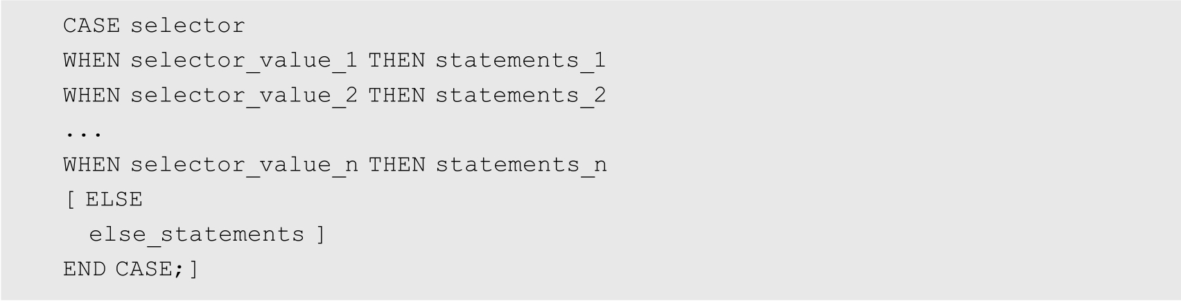 selector是一个表达式(通常是单个变量)。每个selector_value可以是文字或表达式(对于完整的语法,请参阅“CASE”)。