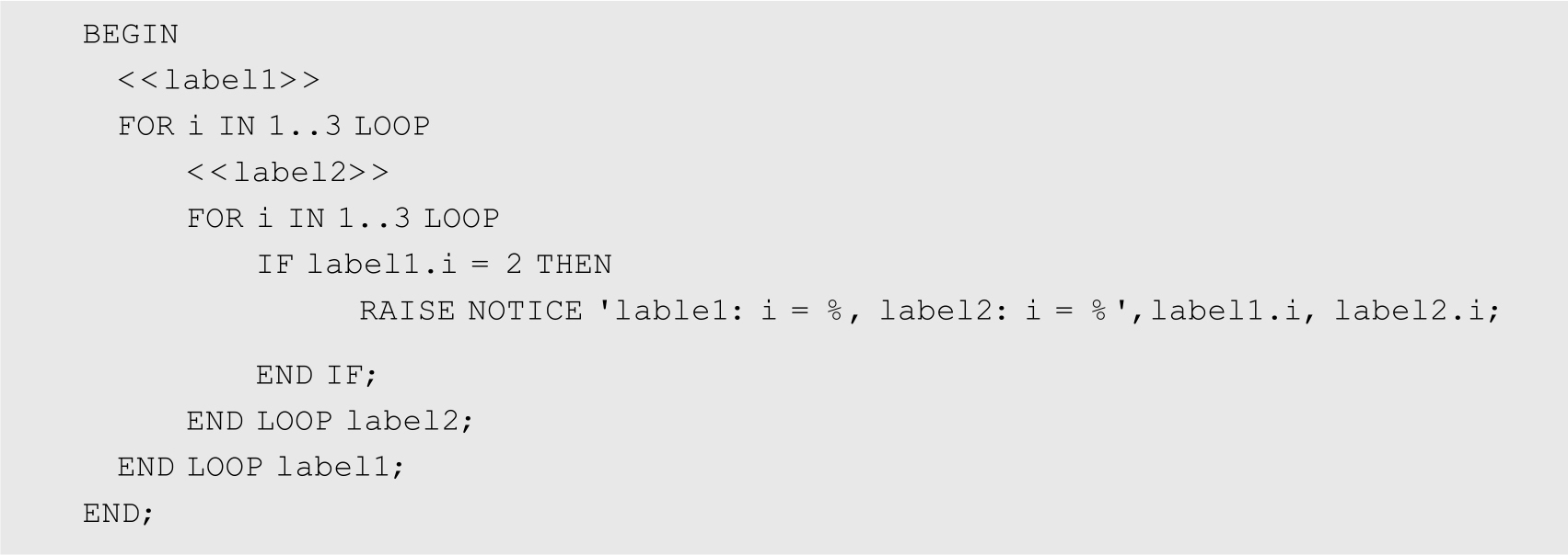 示例2.15: 具有相同索引名称的嵌套FOR LOOP语句。