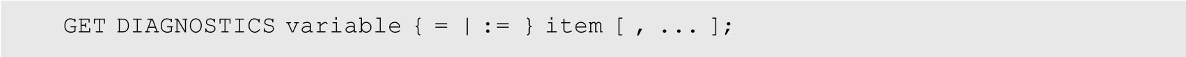有几种方法可以判断一条命令的效果。第一种方法是使用GET DIAGNOSTICS命令,其语法格式如下。