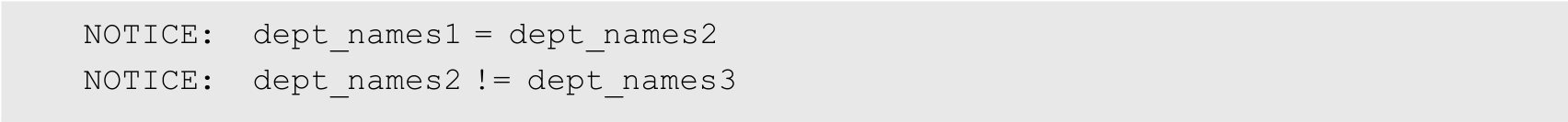两个嵌套表变量只有在拥有相同元素集的情况下才相等(任何顺序都可以)。