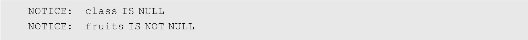 可以使用IS[NOT]NULL运算符,将可变数组和嵌套表变量与NULL进行比较,但是不能使用关系运算符等于(=)和不等于(<>,!=或^=)进行比较。