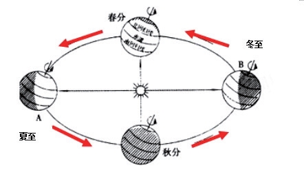 图13.地球运行姿态是北半球夏半年倾向太阳冬半年斜离太阳