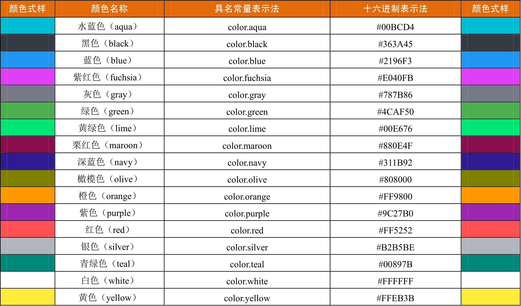 Pine Script V5提供了17种预定义的具名常量,可以用于替代十六进制颜色常数,这样更便于记忆和使用,如表5-1所示。