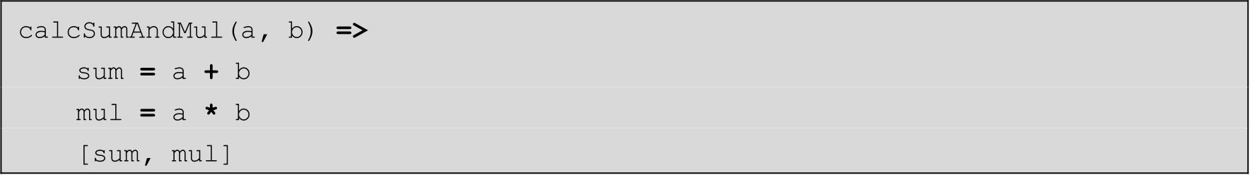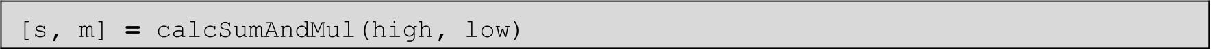 函数调用的返回值也必须是特定的元组表达式,例如在下面语句中是对函数calcSumAndMul的调用。