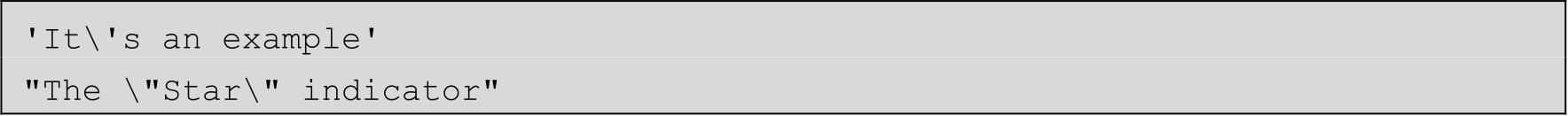 若单引号内的字符串包含单引号,则需要在字符串中的单引号前加反斜线(\)标识。双引号同理,如下面两句: