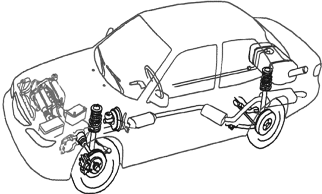 如图1.2所示,传统车辆整体上是一个典型的机电结构,其行驶过程本质上是一个刚性物体在车轮驱动下的运动问题,涉及前进、后退、转向及停止等运动状态。