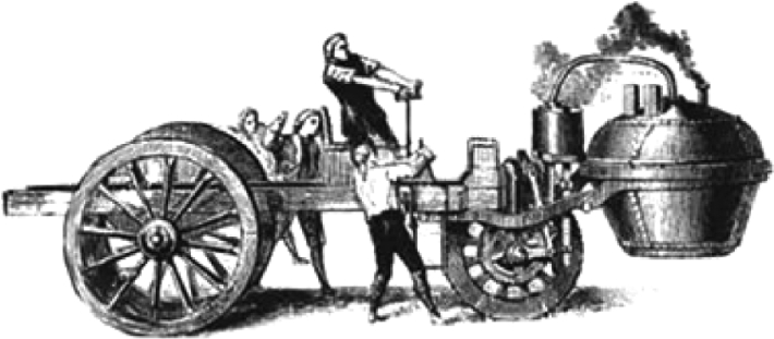 图2.1 世界上第一辆蒸汽驱动的三轮汽车