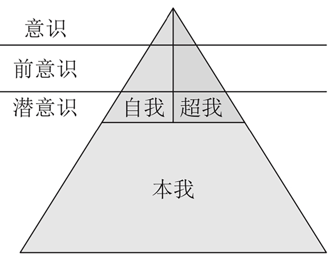 弗洛伊德的人格结构理论认为,人的内在人格包含三个相互对立又相互联系的“我”(见弗洛伊德人格构成与意识划分示意图)。