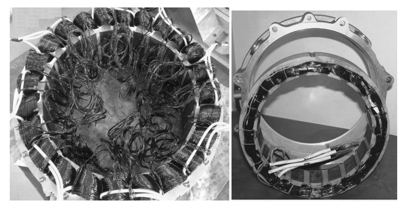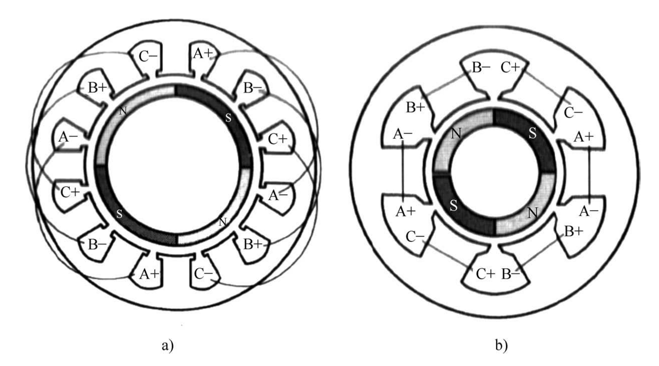 a)整数槽分布式绕组 b)分数槽集中式绕组