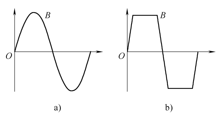 图1-8 正弦波气隙磁场与方波气隙磁场波形示意图