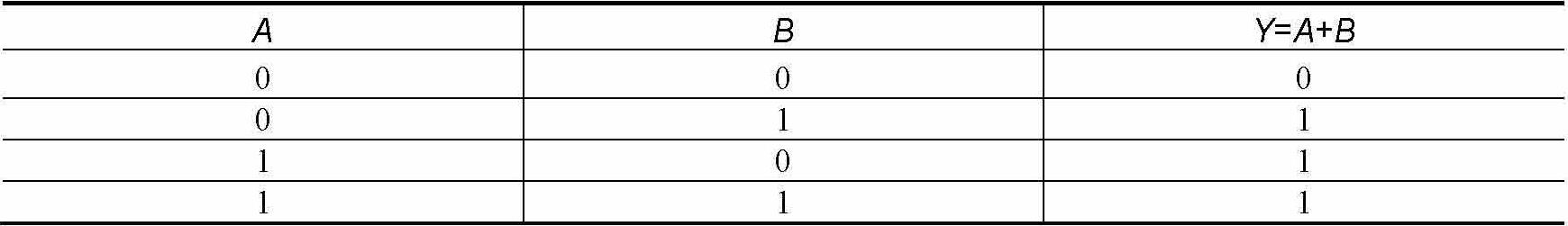 当决定某一事件的一个或多个条件满足时,事件便能发生。 Y = A + B 真值表如表1-3所示。