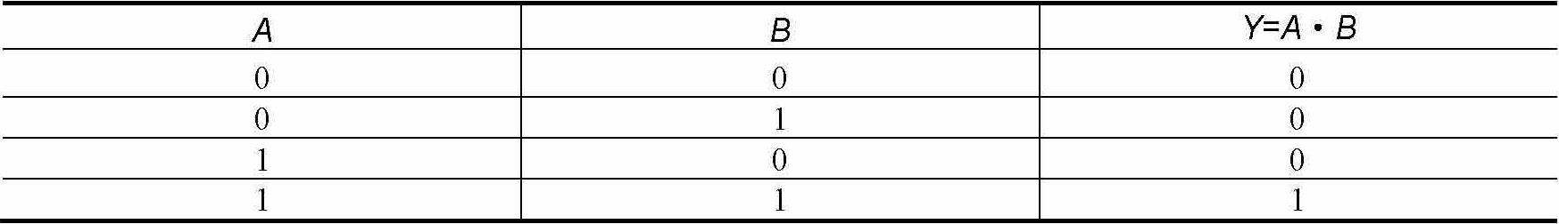 当决定某一事件的所有条件都具备时,事件才能发生。 Y = A · B 真值表如表1-2所示。